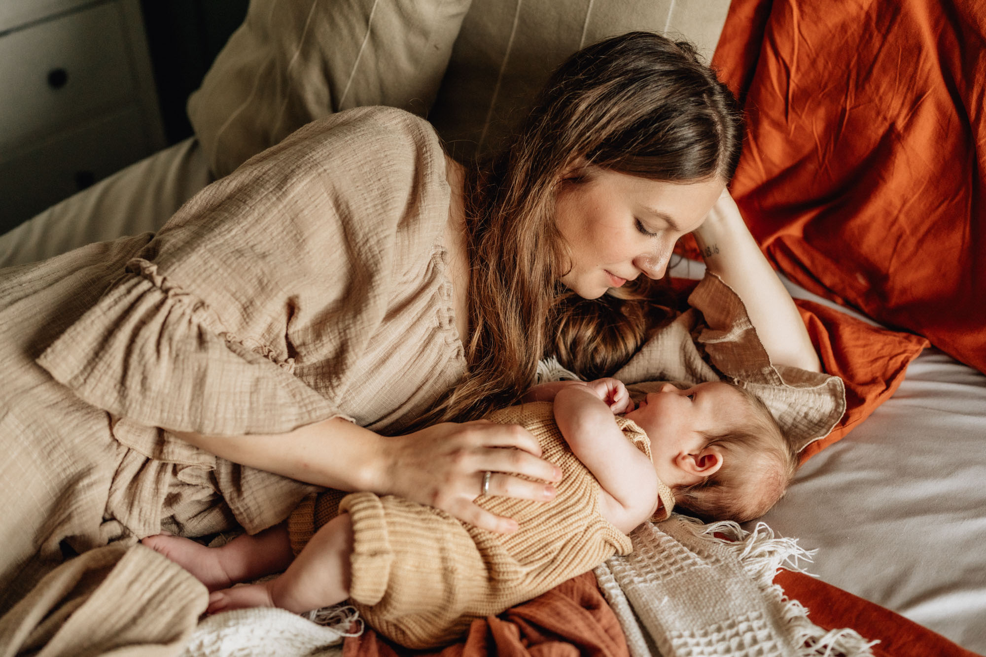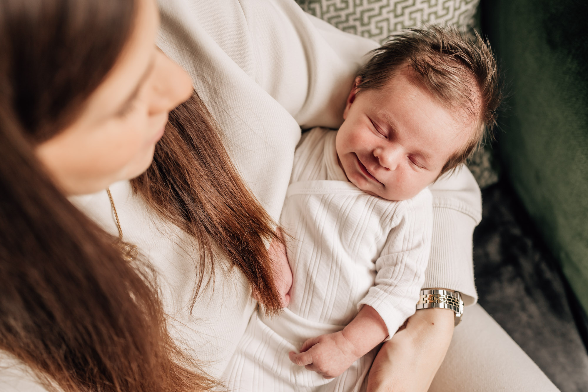 I recommend anywhere between 5 and 14 days after birth for the shoot to take place, however the beauty of a lifestyle shoot is that going over that 14 day mark doesn’t really matter – you’ll still get beautiful photos! It’s more important for a more traditional, posed newborn shoot that it takes place in that window, as then it’s easier for the photographer to achieve the poses that are expected. With a lifestyle approach, any age is great, but capturing the squishiness of the first few weeks is something that a lot of parents look for.